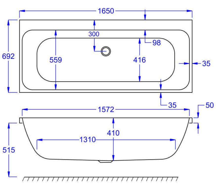 Carron Integra Single Ended Bath with Grips 1650x700 Carronite™ Reinforced