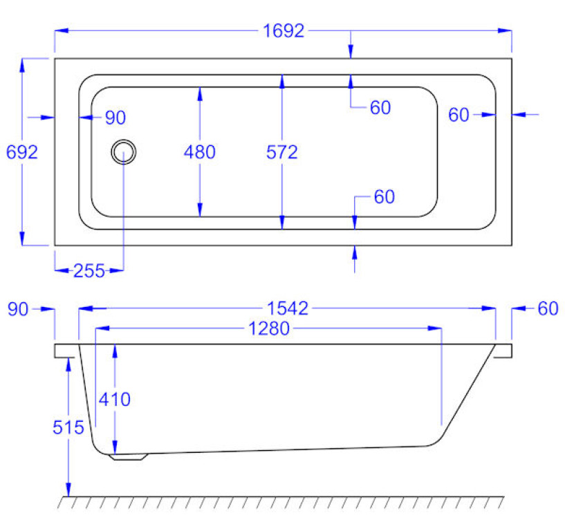 Carron Quantum Single Ended Bath 1700x800 Carronite™ Reinforced