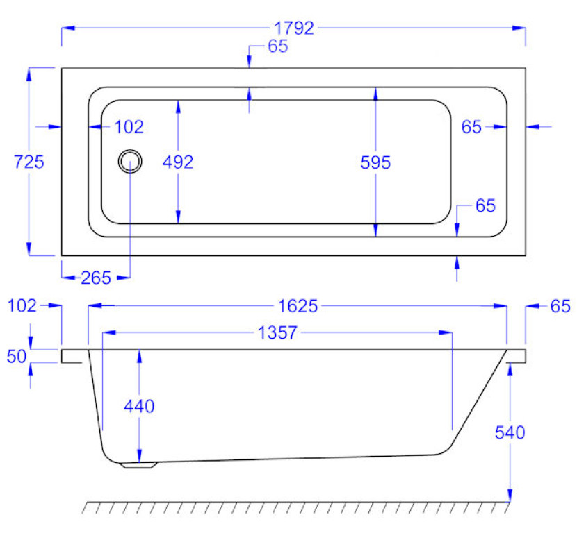 Carron Quantum Single Ended Bath 1800x725 Carronite™ Reinforced