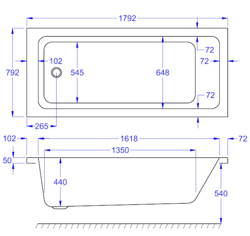 Carron Quantum Single Ended Bath 1700x800 Carronite™ Reinforced