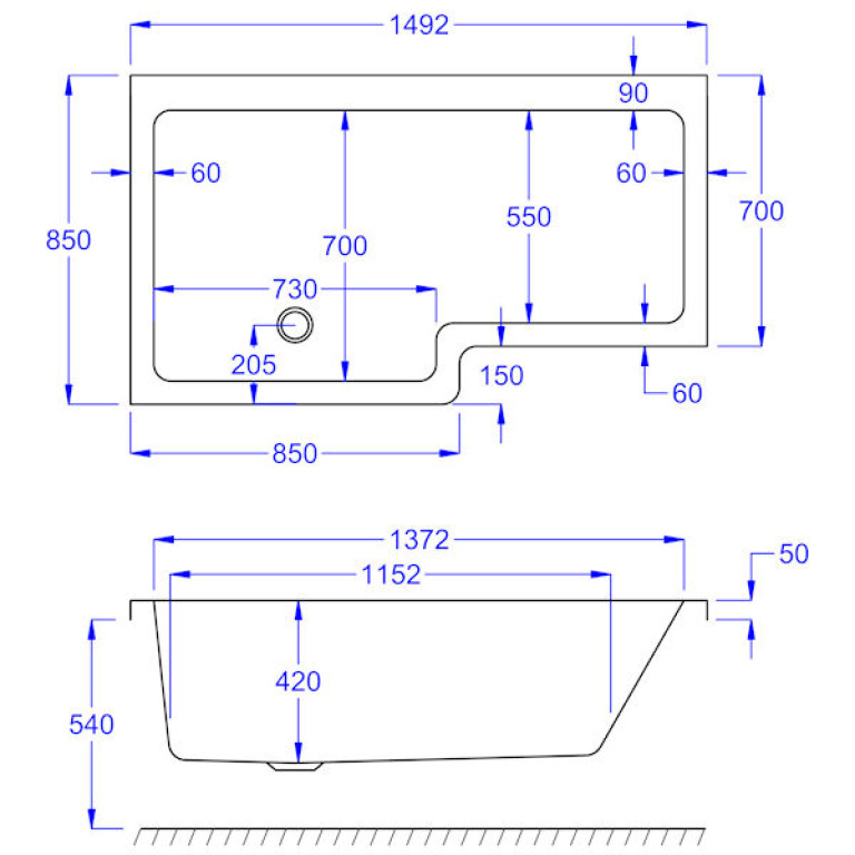 Carron Quantum Showerbath 1500 Front Bath Panel Carronite™ Reinforced
