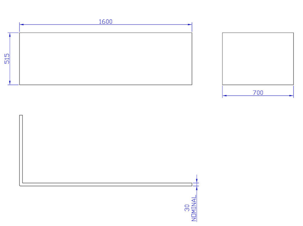 Carron Lshape 1600x700x430 Low Level Bath Panel Carronite™ Reinforced