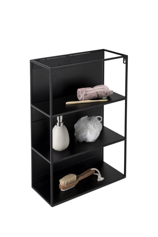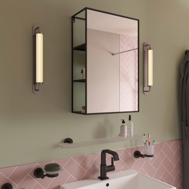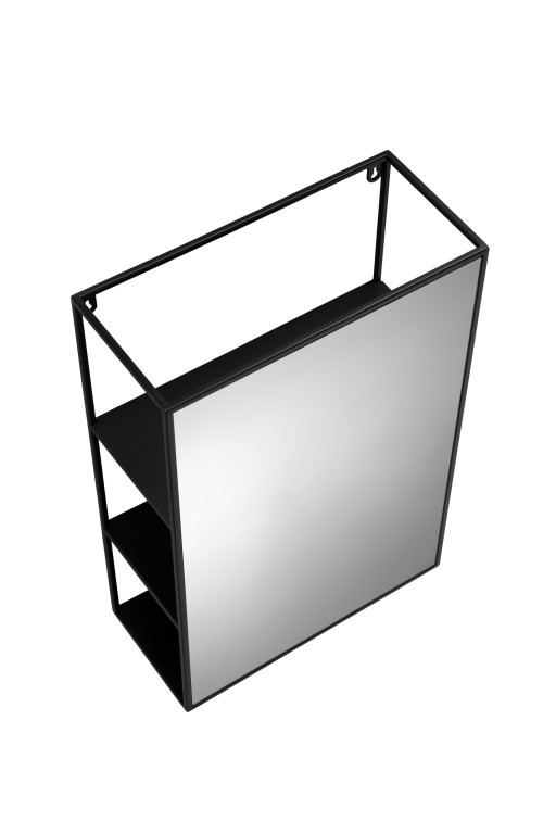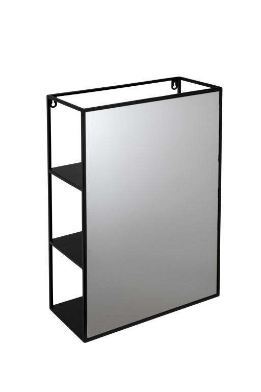 Offering an industrial take on a staple bathroom accessory, this rectangular mirror adds a simple but modern focal point to any room in the house. The matt black steel frame provides much-needed additional storage with three shelves, hidden behind the mirror, that are perfect for keeping cosmetics and toiletries close at hand. Easily installed with two fixing hooks on the back and all fixtures and fittings included, this 60x40cm mirror is the perfect finishing touch for your bathroom.