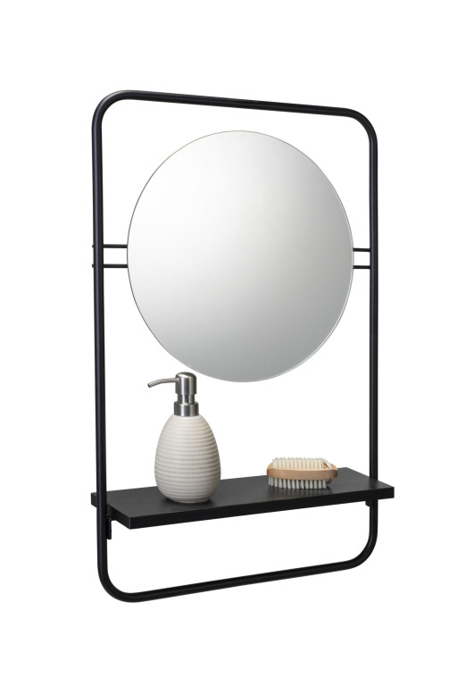The Furzton Round Mirror with a Matt Black Frame with Shelf will enhance any space. Superior glass and a chic matt black steel shelf provide easy storage in this modern mirror. It enhances the look and feel of any room in the house and is perfect for any use.