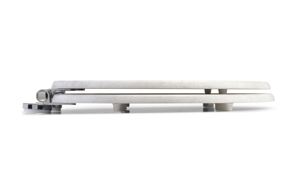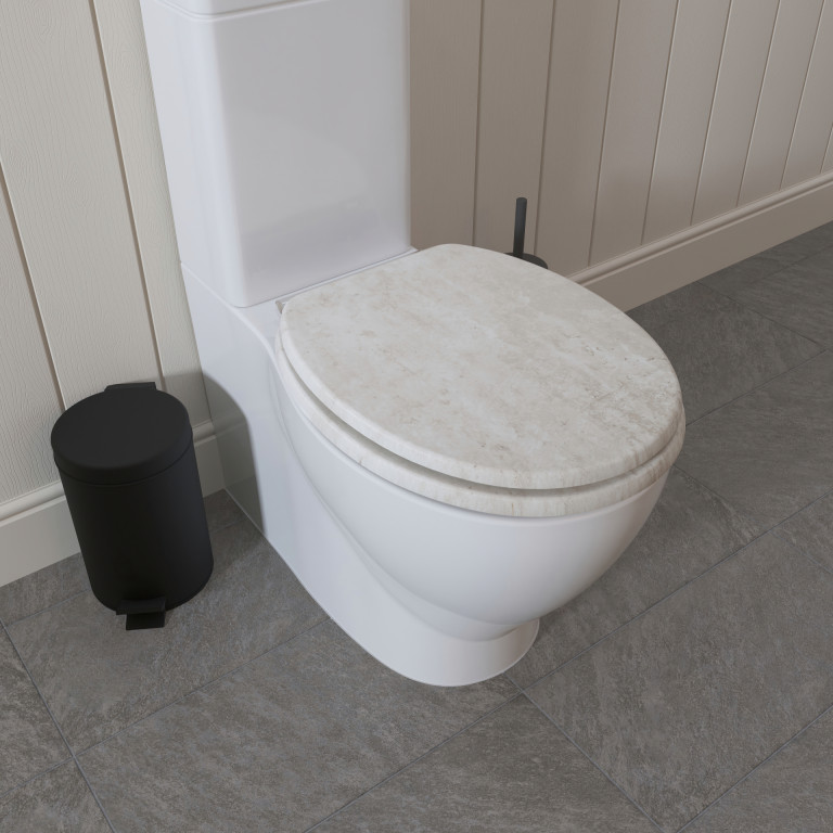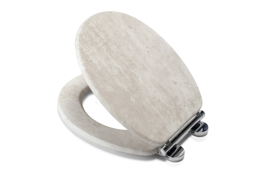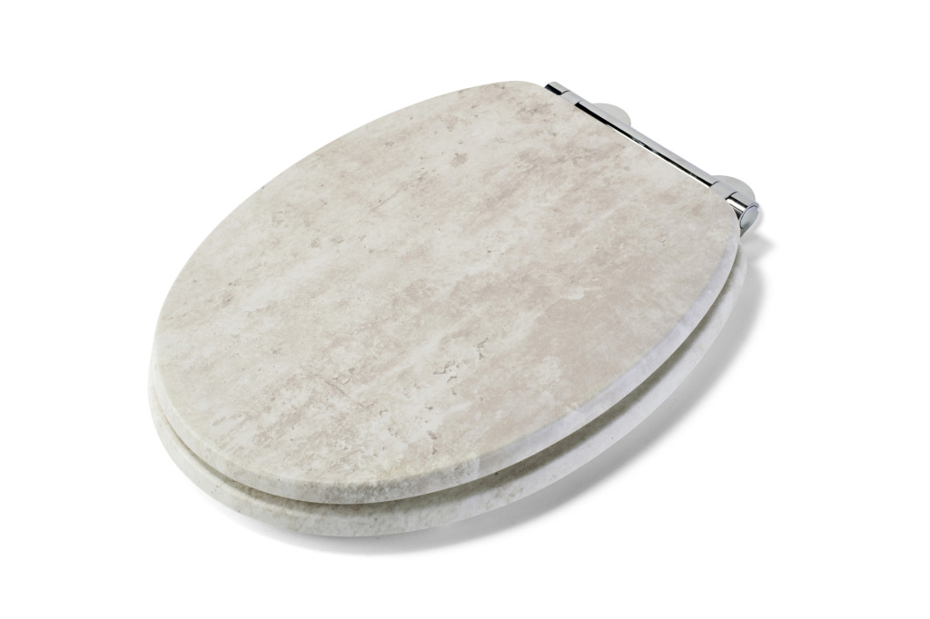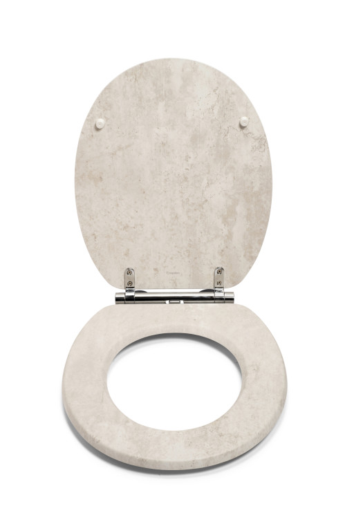 Made from quality moulded wood with a pale concrete effect finish, this seat features patented high strength, adjustable hinges. Compatible with any standard UK toilet pan, there’s no need to worry about the seat not fitting. Installation is extremely easy. Simply remove the protective film, position the self-adhesive hinges and tighten into place. Polished hinge covers clip into place for a stylish finish.
