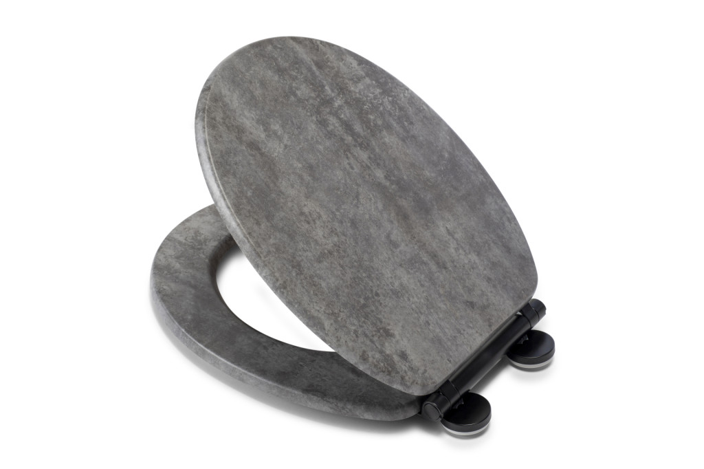 Made from quality moulded wood with a slate-effect finish, this seat features patented high strength, adjustable hinges. Compatible with any standard UK toilet pan, there’s no need to worry about the seat not fitting. Installation is extremely easy. Simply remove the protective film, position the self-adhesive hinges and tighten into place. Polished hinge covers clip into place for a stylish finish.