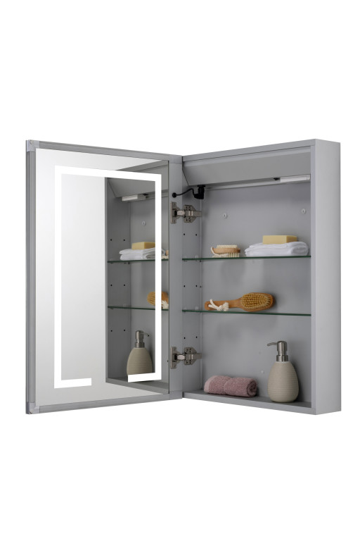 Hang your cabinet, lock into place and relax. It’s as simple as that!- Aluminium cabinet with double sided mirrored door