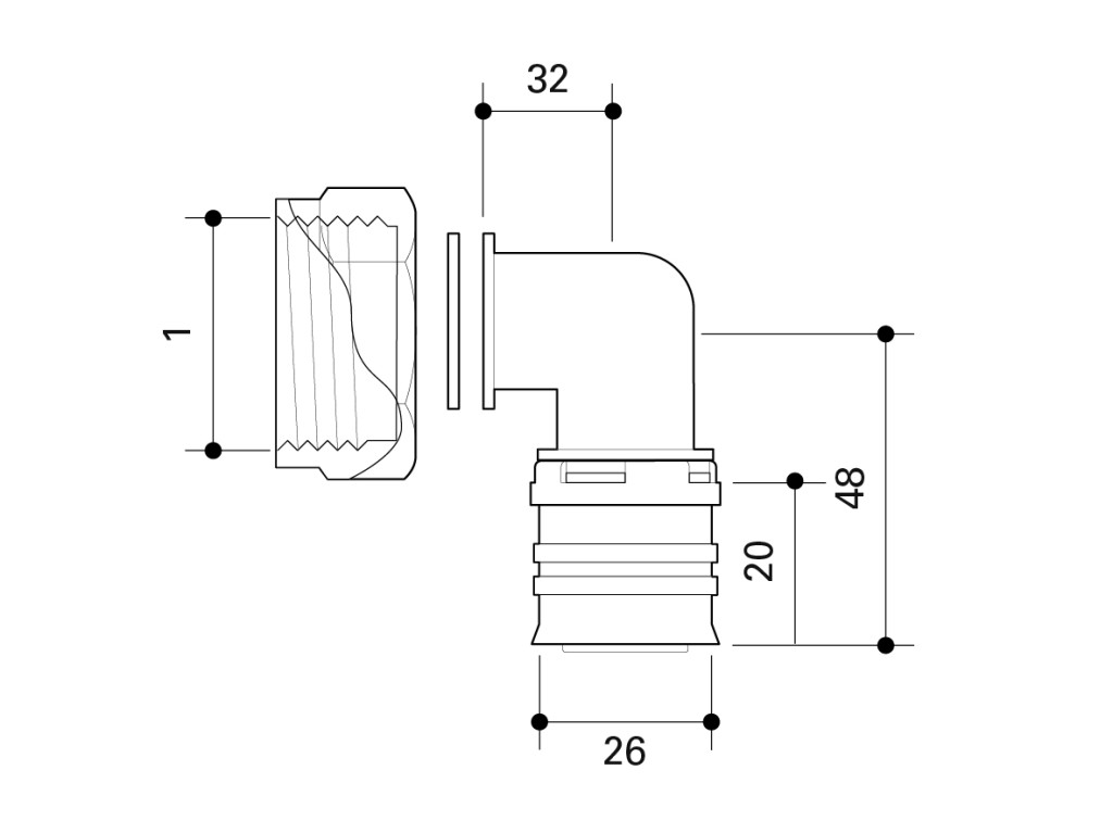 Fränkische Alpex-Duo XS Elbow Transition Coupling Flat-Sealing 20-G3/4