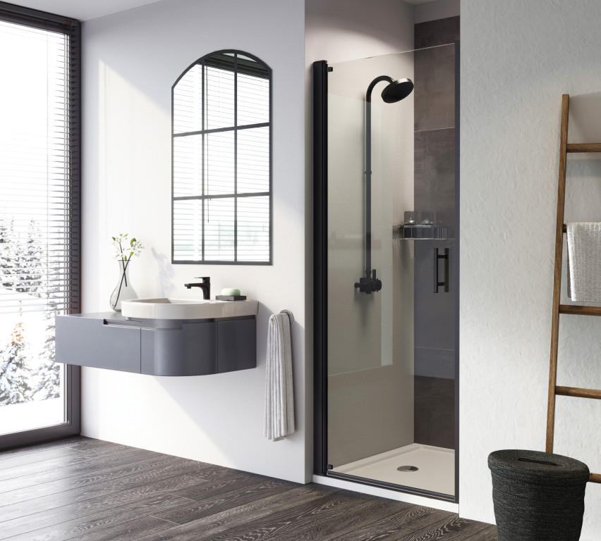 The modern styling of this outward opening Pivot Door creates a supremely efficient and flexible solution to suit any number of showering configurations.