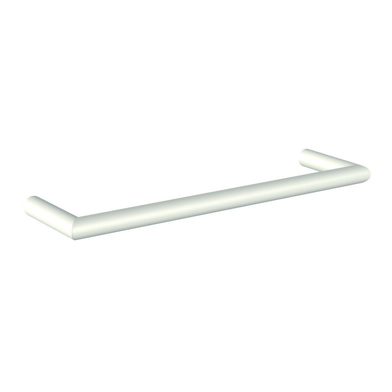 Patented ThermoSphere 12V Electric Heated Towel Bar. Double mount 450mm round design finished in matt white.