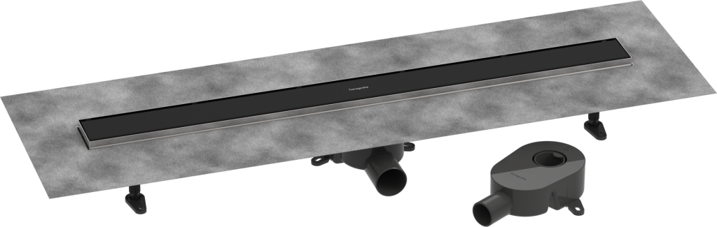 Complete set from hansgrohe: RainDrain Go 900 tileable shower channel in matt black