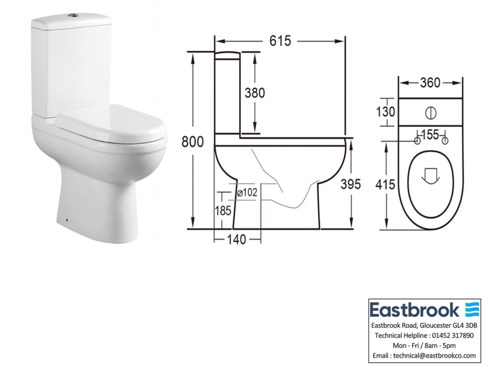 Dura Close Coupled Eco Vortex WC Pan only with Fixings