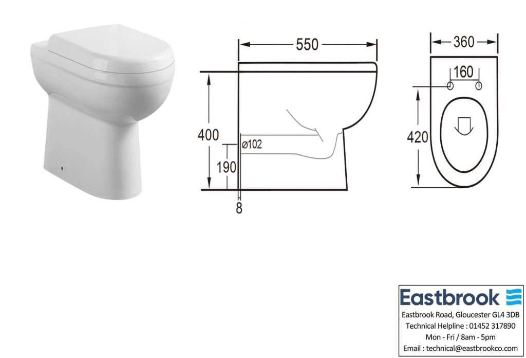 Rimless Dura Back To Wall Close-Coupled Eco Vortex Pan only - White (Cistern & Seat...