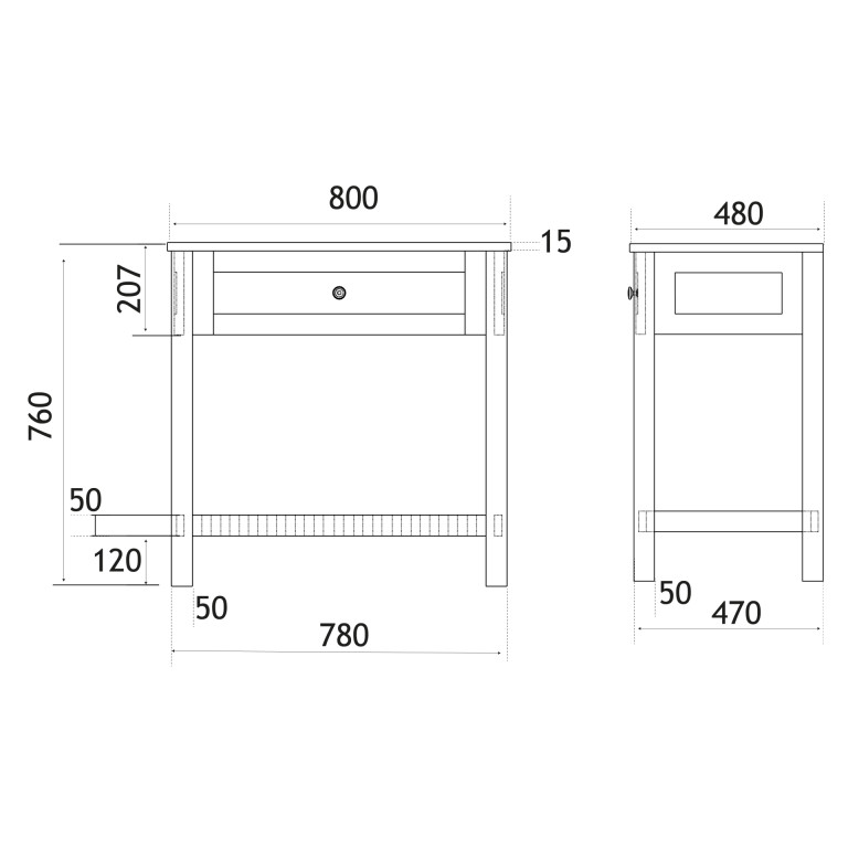 - 480mm (L) x 780mm (W) x 760mm (H)