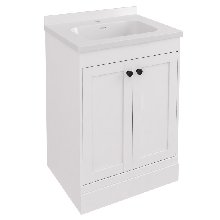Hardwick 600 mm Polymarble Square Basin only 1 Tap Hole - White (Vanity unit & Tap Sold...