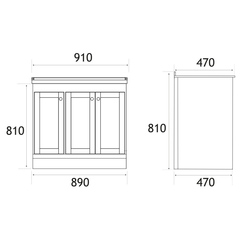- 470mm (L) x 890mm (W) x 810mm (H)