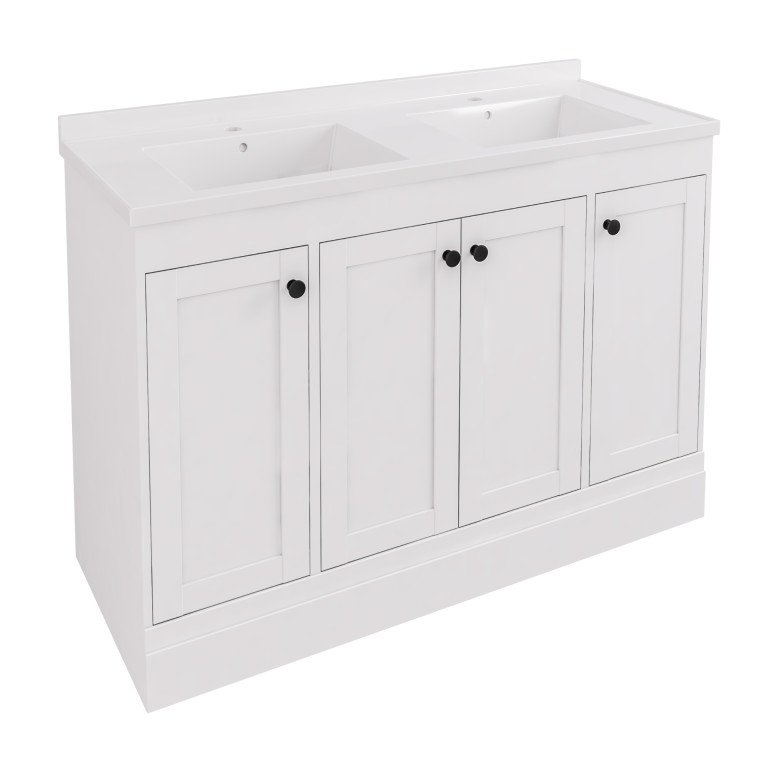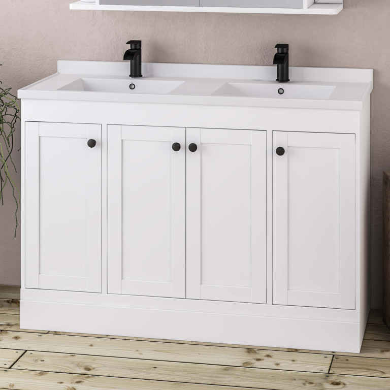 Hardwick 1200 mm Square Double Bowl Basin only 2 Tap Holes - White (Vanity unit & Tap...