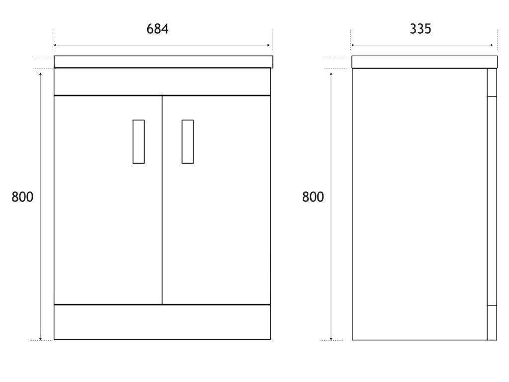 - 335mm (L) x 684mm (W) x 800mm (H)