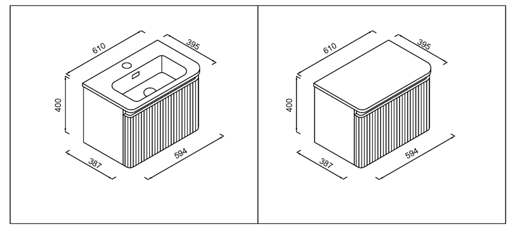 Belice Fluted 60 Wall Hung Unit only - High Gloss White (Basin & Tap Sold Separately)