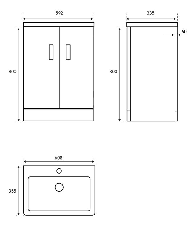 - 334mm (L) x 592mm (W) x 800mm (H)