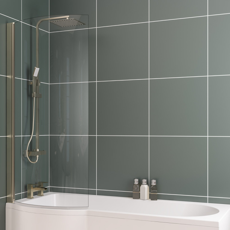 P Shape Bath Screen Left Handed - Brushed Brass