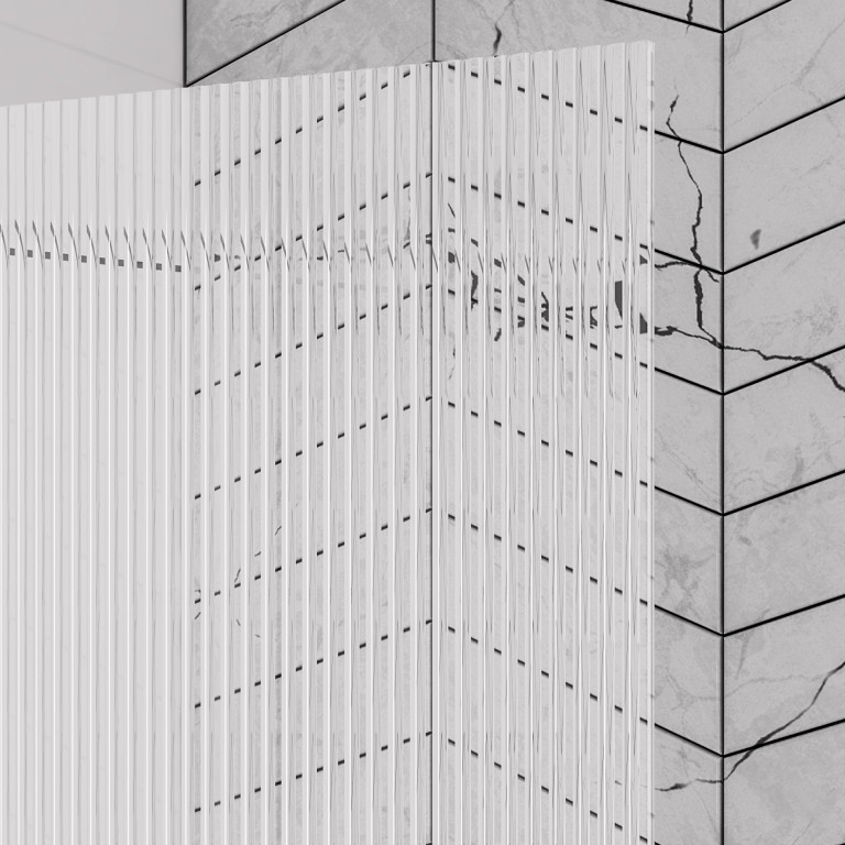 Download (0.22 MB)5mm Straight bath screen in fluted glass L-H Chrome