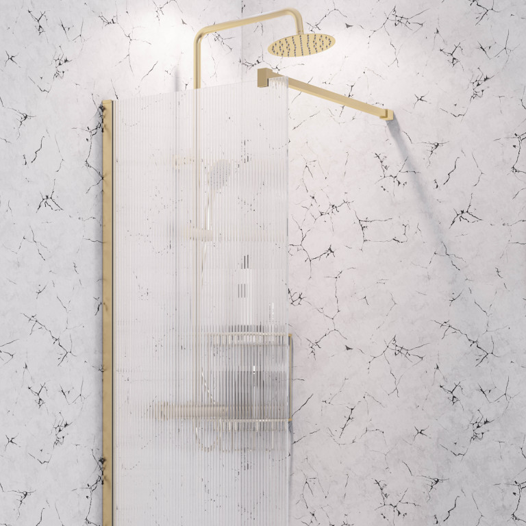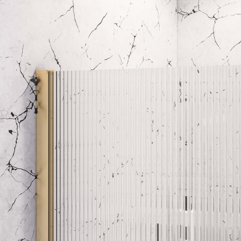 Vantage 2000 8mm fluted glass walkin Shower panel 900 x 2000 - Brushed Brass