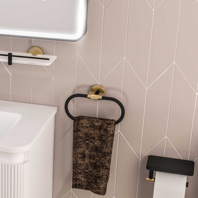 Catania Toilet Roll Holder with Shelf - Matt Black/Brushed Brass