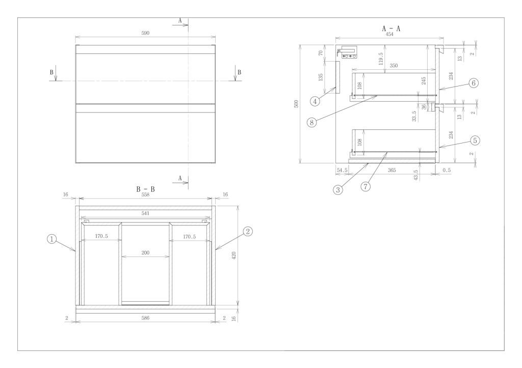 - 454mm (L) x 590mm (W) x 500mm (H)