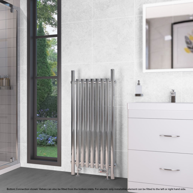Download (0.50 MB)A masterpiece for your bathroom or any other room. The vertical bars at the ends can be used as towel / bathrobe hangers, middle section at the top can be used to dry your towels too.This exceptional design is available in 2 heights and 2 widths with 4 colour options.