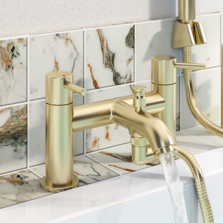• Taps Bath Taps Bath Mixer Taps Meriden Bath Shower Mixer Hand set & hose & holder - Brushed Brass