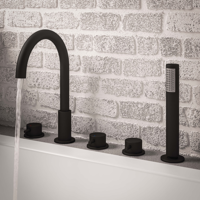 Meriden Three Hole Wall mounted Bath Tap set - Matt Black