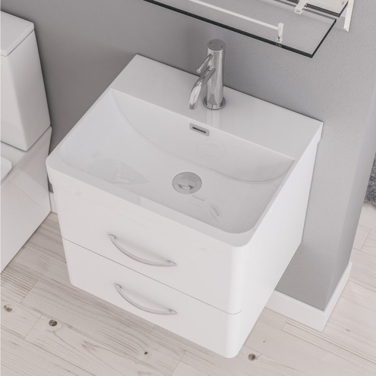 Cavone 50cm Ceramic Cabinet Basin only 1 Tap Hole - Gloss White (Vanity unit & Tap Sold...