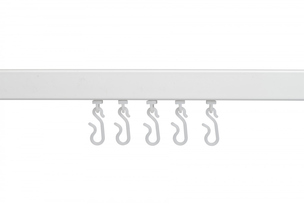 - Supplied with twelve hooks and gliders for one shower curtain