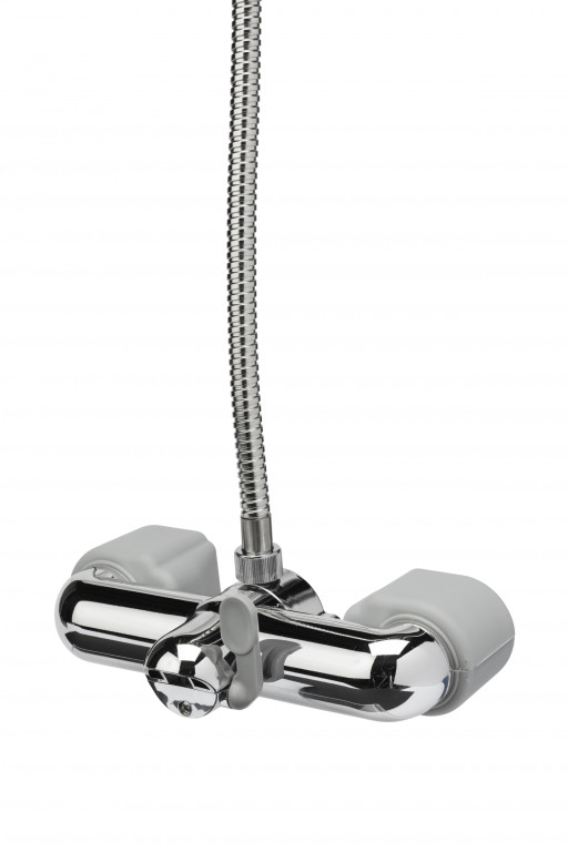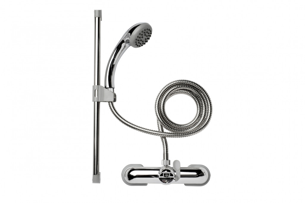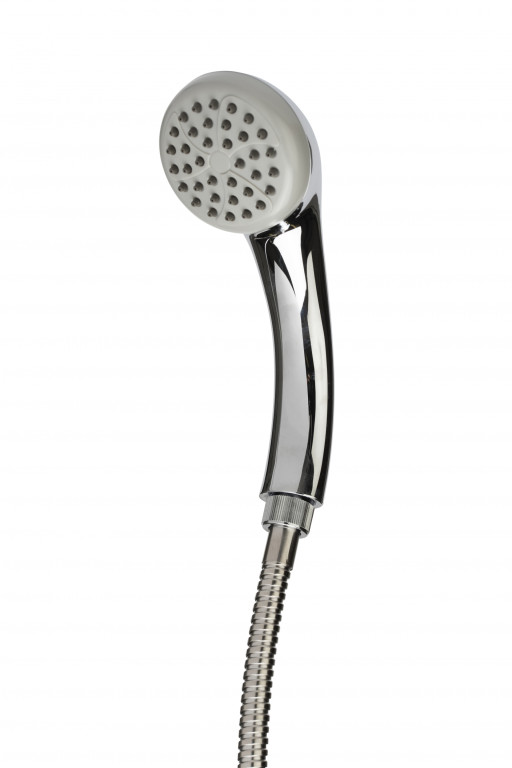 The contemporary chrome set also includes a polished riser rail, single function handset and flexitube hose.- Best suited for round taps