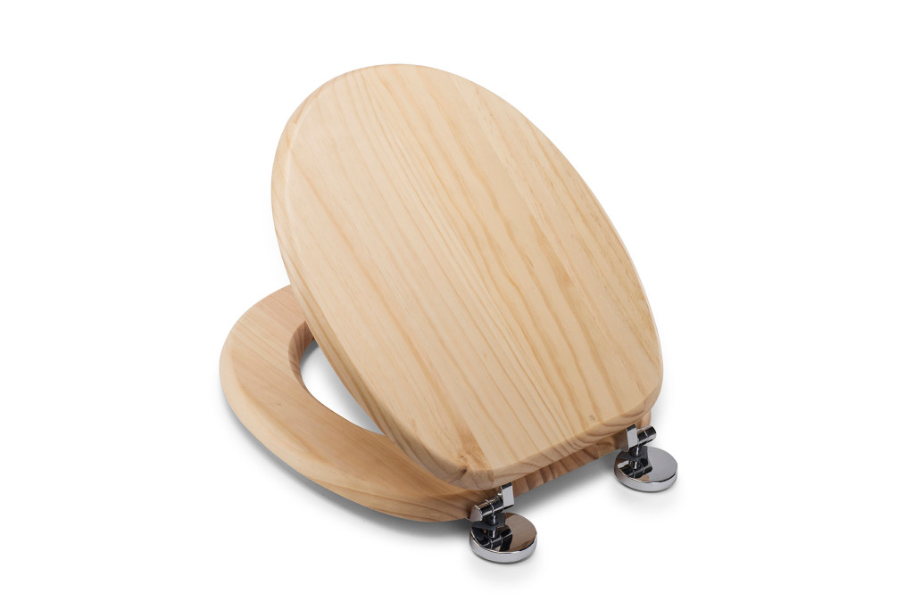 This solid wood seat, with blonded pine effect finish, incorporates a natural, timeless quality to your bathroom.
