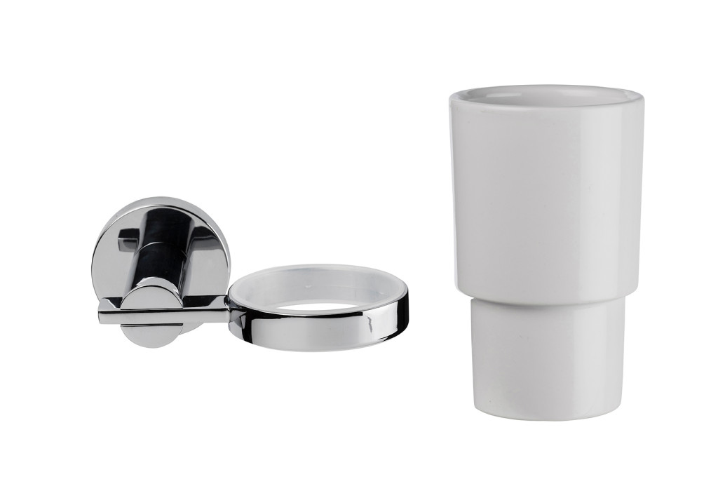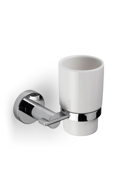 A blend of flat surfaces, curves and cylinders gives this modern tumbler and holder that ‘metropolitan’ feel, perfectly complementing clean, cool bathroom hardware.