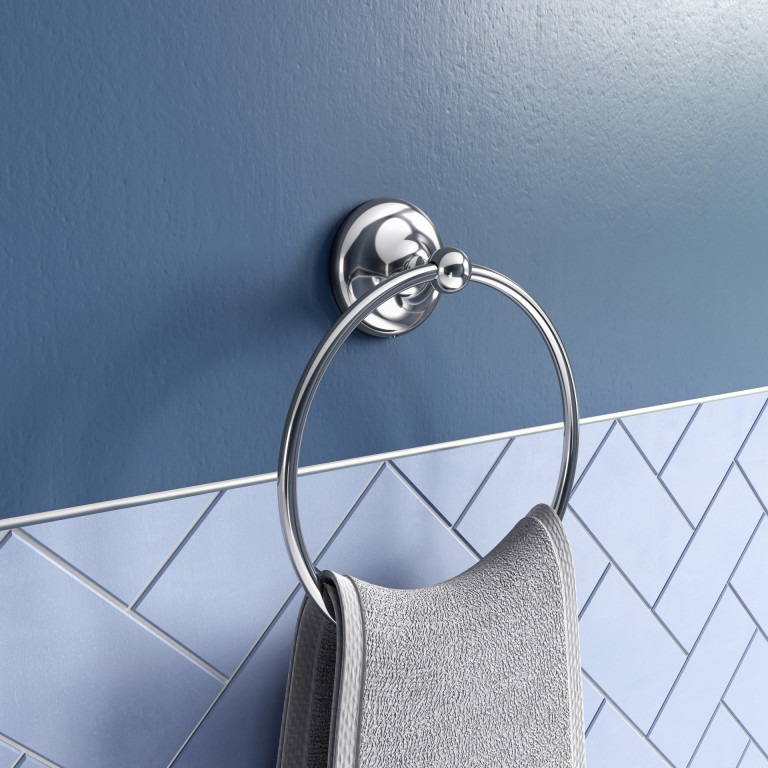 - Brackets adjust on towel rail and glass shelf to accommodate existing screw centres.