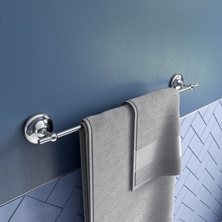 - Brackets adjust on towel rail and glass shelf to accommodate existing screw centres.