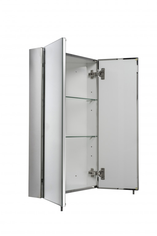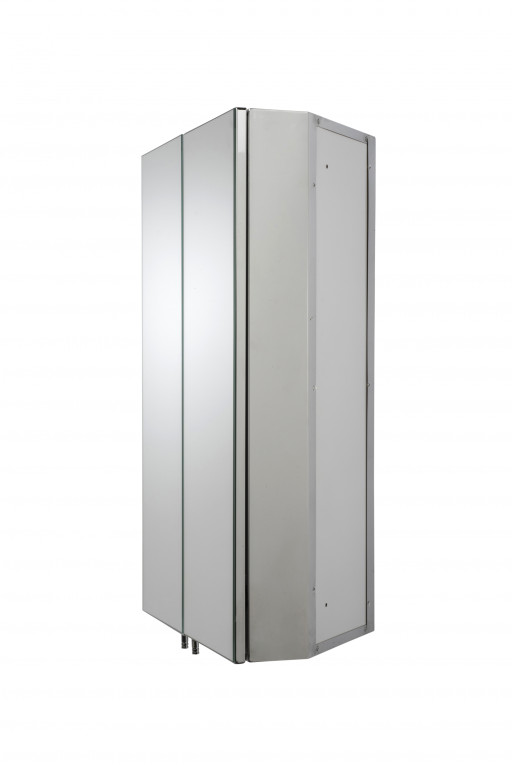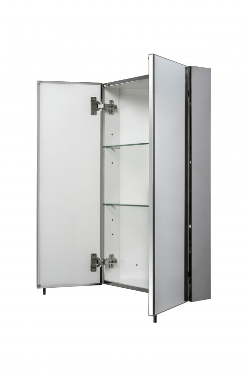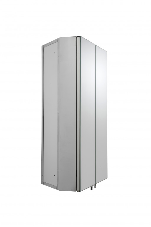 The stainless steel and mirrored design provides a generous amount of storage that makes the most of otherwise unused wall space.