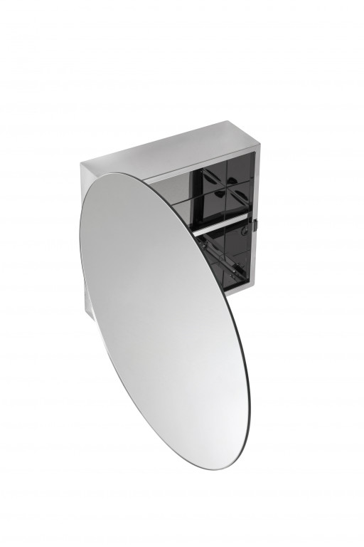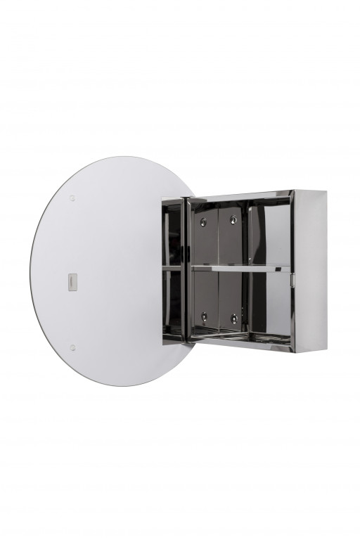 Clever storage is essential in smaller bathrooms with limited space. This unique stainless steel cabinet provides discreet storage ideal for cosier interiors.